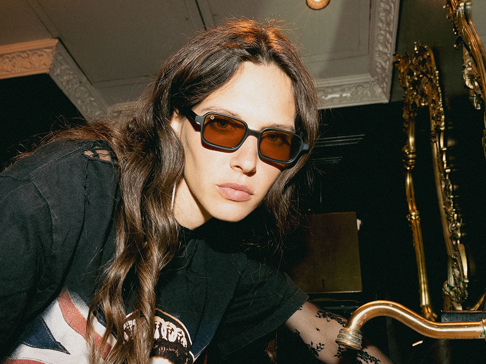 From head to shade, she owns the look. Wearing the Offset frames with our hat and tee, the model brings the uniform to life. Nothing filtered, all attitude.