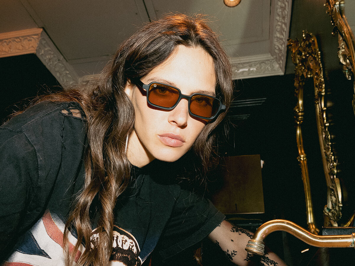 From head to shade, she owns the look. Wearing the Offset frames with our hat and tee, the model brings the uniform to life. Nothing filtered, all attitude.