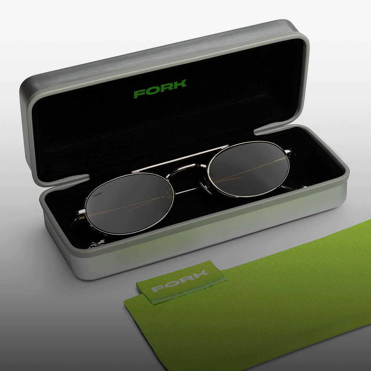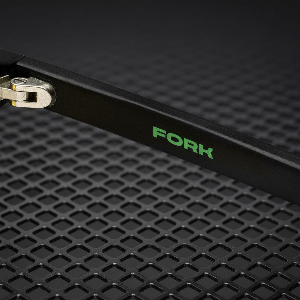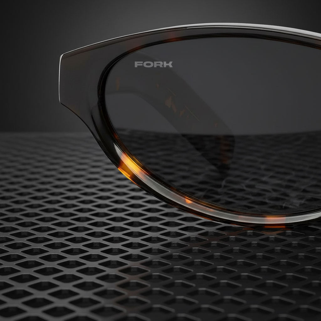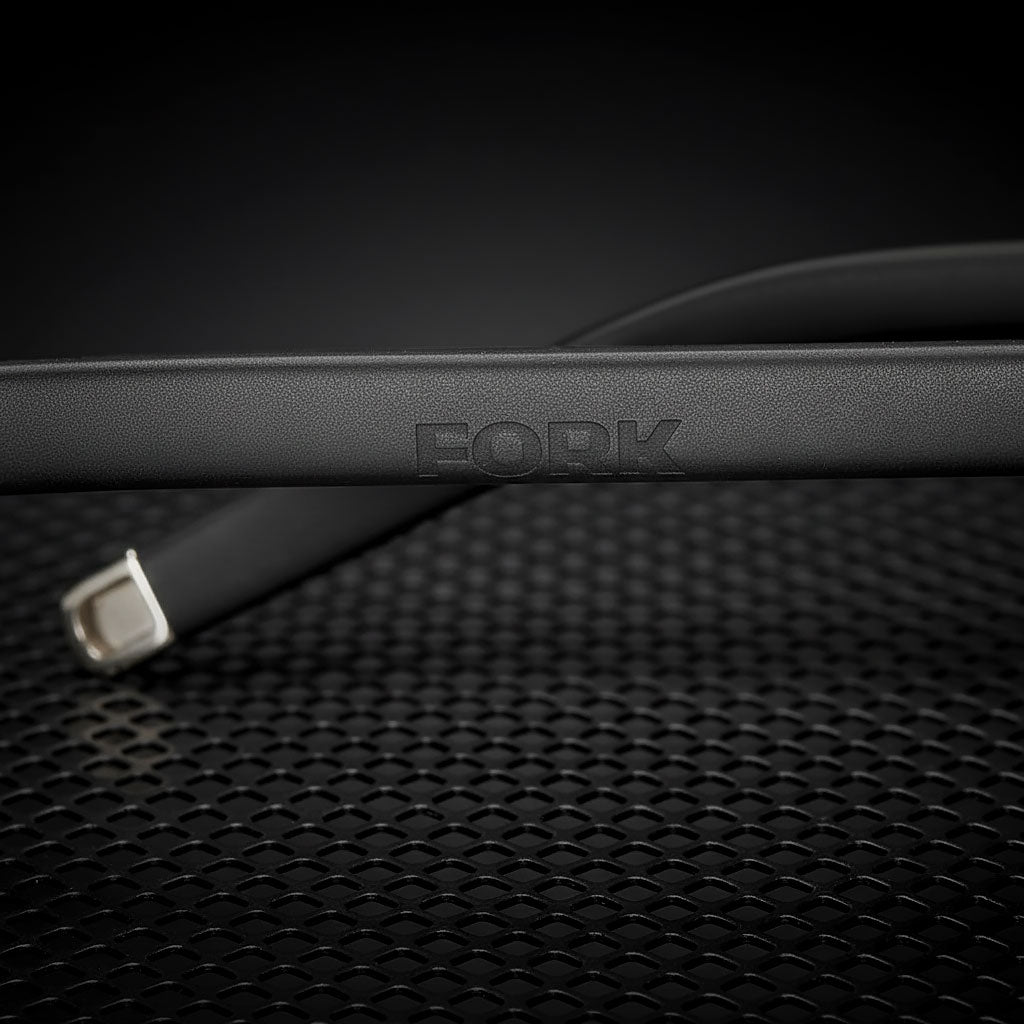 Raised FORK logo pressed into the outer temple. Smooth, tonal, and built into the acetate.